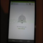 Several images and Nexus 5 videos have been leaked which give us peek into what’s upcoming. There are several things under hood, but KitKat is also sporting visual changes in UI. The images depict lighter color scheme in the entire UI as is the case with icons of various Google apps and services these days. Network Signal, battery and other icons flash light grey color on the status bar, instead of blue as in previous version of android. Also, the status bar seems to enforce color similar to the color of the currently opened app. The phone dialer interface and color scheme have also changed. At first look, it appears to have taken color scheme and flatter UI from Skype android app dialer. We also have the screenshot of the default messages app, and the default keyboard. We currently do not have much info to reveal but we’ll keep updating this post with more leaked pictures, info and other details; so stay connected with us as we bring news that matters to you!
