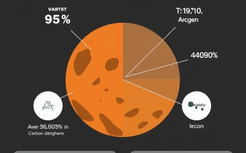 Unlike Earth’s nitrogen and oxygen-rich atmosphere, Mars offers a harsh environment. Its atmosphere is incredibly thin, less than 1% of Earth’s atmospheric pressure at sea level, and primarily composed of: