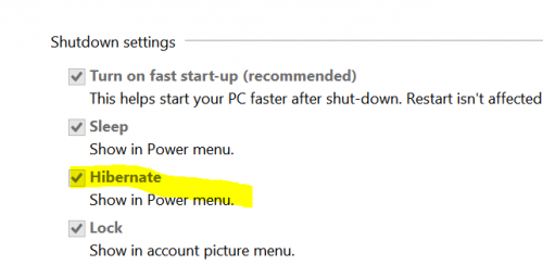 - Scroll down and Tick mark hibernate option. Save Changes.
