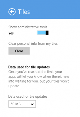 - Take your mouse to top right corner of screen, choose settings in charm bar and then Tiles.